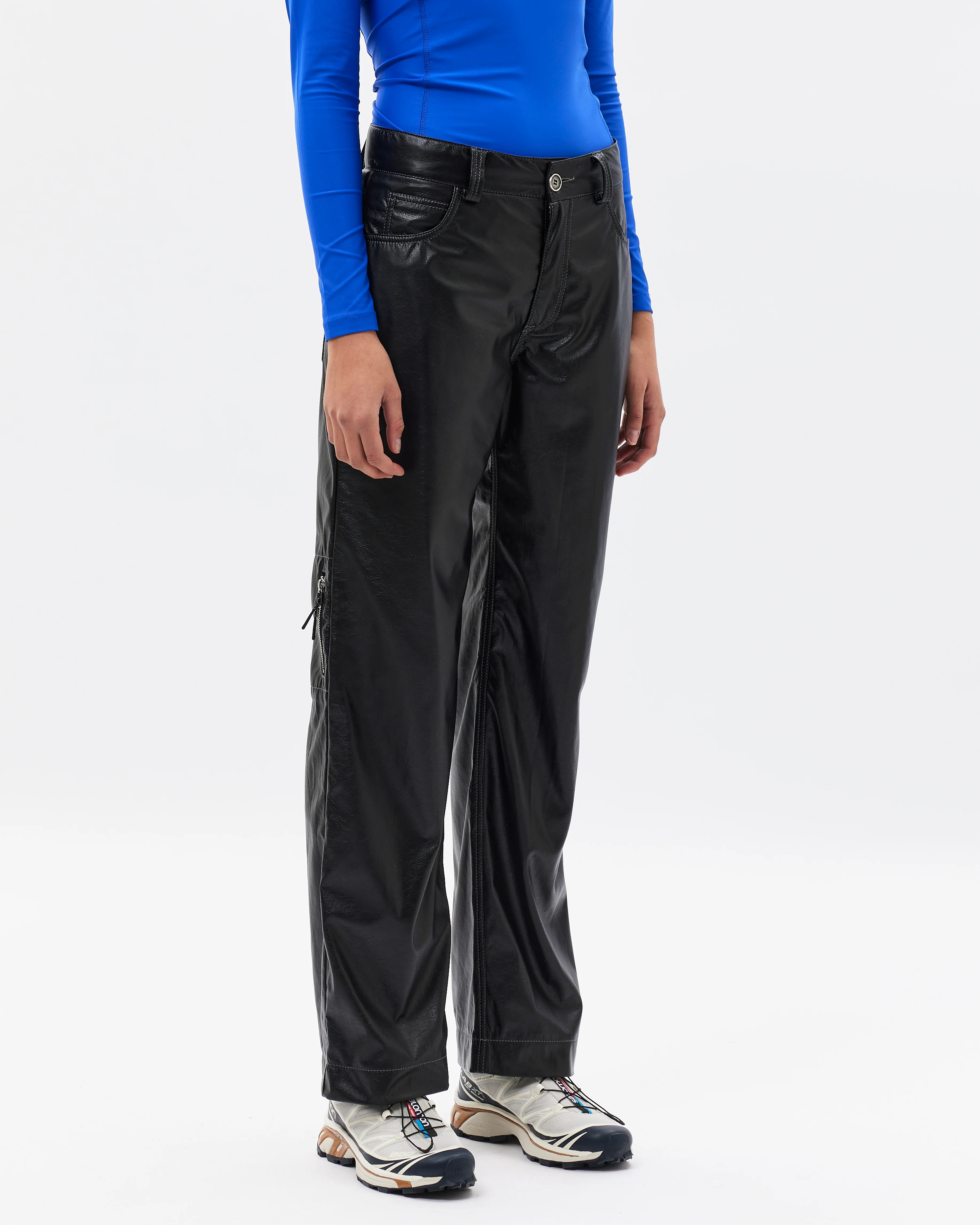 Crafted with a glossy finish, these straight-leg pants from Soulland feature not four but five pockets! If that wasn’t enough, you can also find a hidden pocket on the back leg above the knee. Perfect for skulduggery.