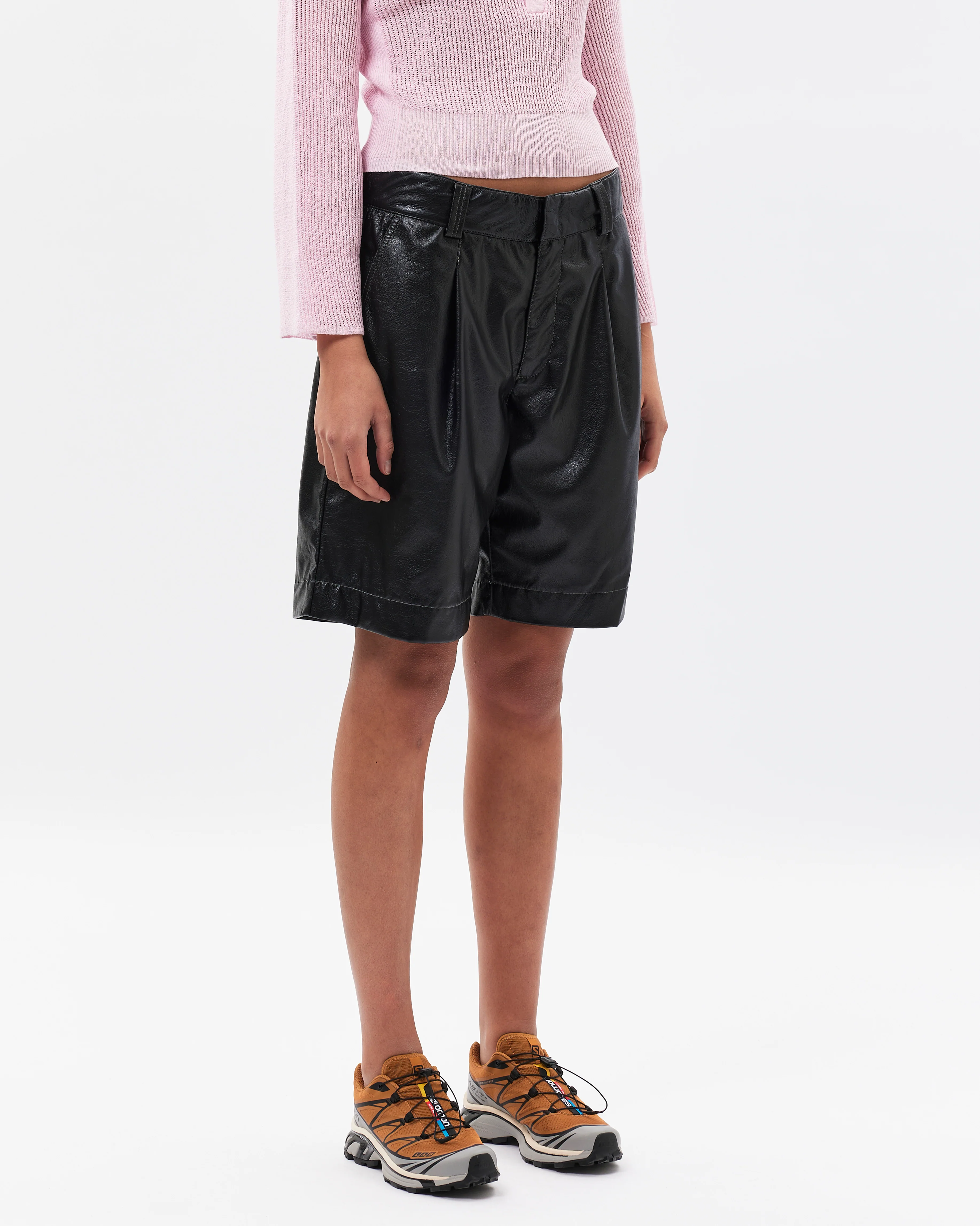 Dive into the new year with new pieces from Soulland! The Marion shorts are crafted with a glossy finish, a wide pleated leg, and a belt-looped waistband. Patch pockets sit on the back while a hook and eye closure secures the waist.